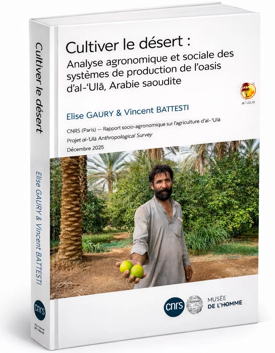Gaury Elise & Vincent Battesti (2025) — Cultiver le désert : Analyse agronomique et sociale des systèmes de production de l’oasis d’al-ʿUlā, Arabie saoudite, Paris, CNRS, Zenodo (al-ʿUlā Anthropological Survey Project), 475 p.